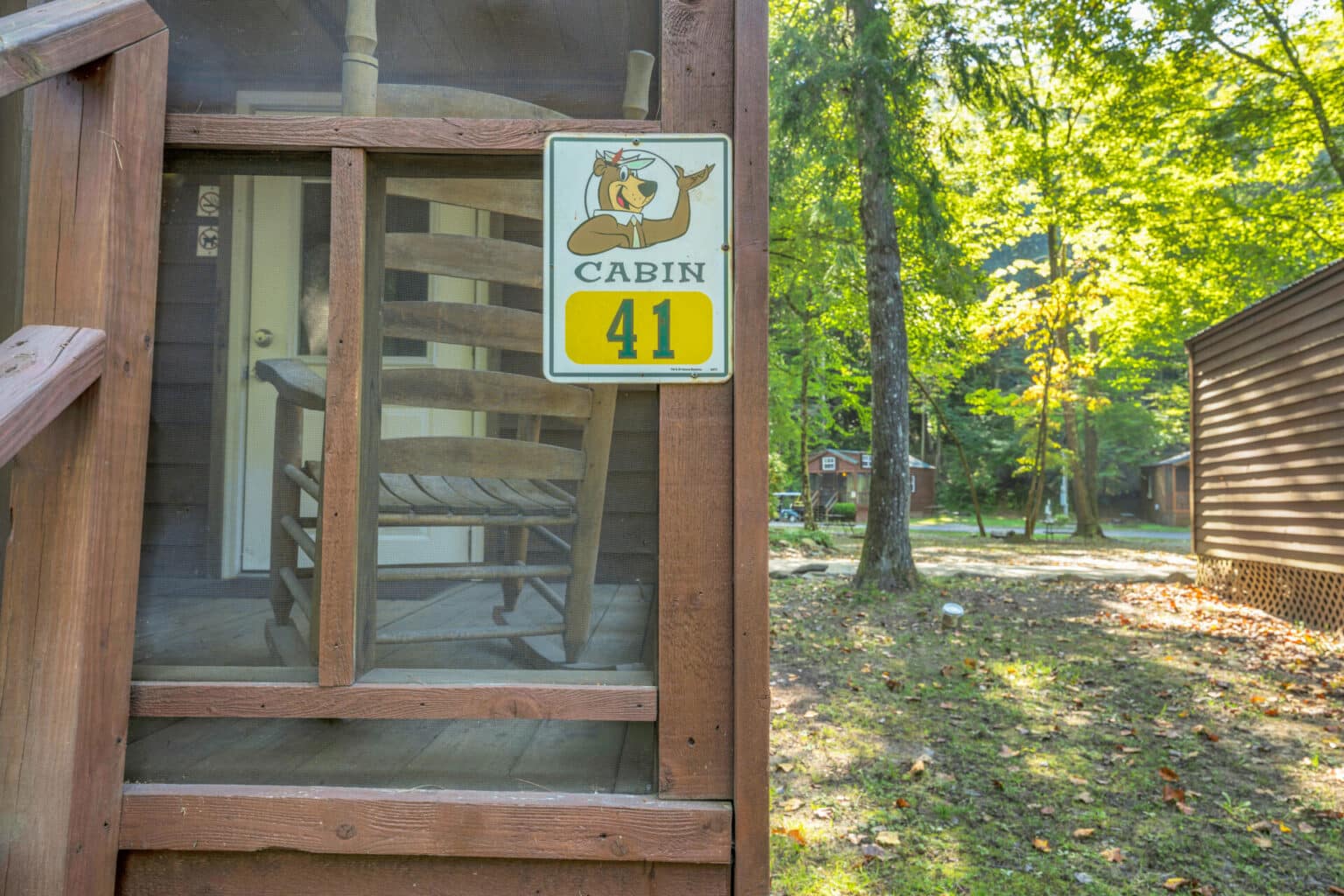 - Screened porch, full length of cabin w/old fashioned swing and rocking chairs
